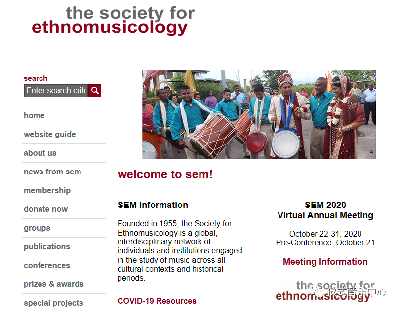 2020年10月22至31日,SEM年会(SEM 2020 Virtual Annual Meeting)以线上虚拟会议的形式召开,参会人数约为700人。民族音乐学会(The Society for Ethnomusicology,简称SEM)是一个致力于从人文社科的不同角度研究多元音乐文化的学术组织,成立于1955年,其总部设在美国,目前拥有约1800名国际会员。该学会旨在促进不同历史时期和文化背景下的音乐研究、学习和表演。