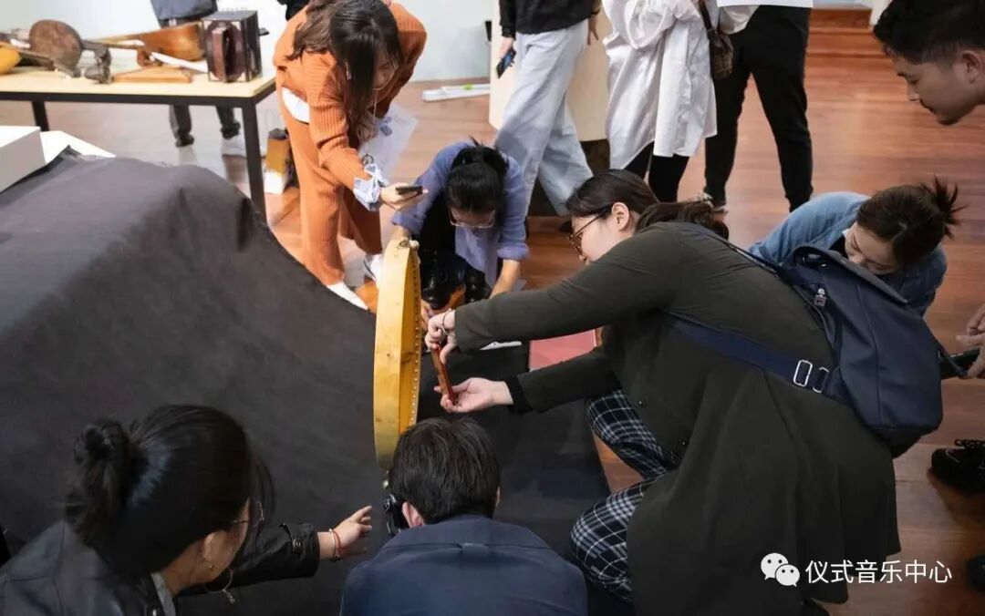 在乐器博物馆里,邢媛老师对刚刚收进馆藏的一些中外民族乐器(萨满鼓、古斯里、手风琴、萨兹、曼陀铃、非洲竖琴、塔尔等)作了学术讲解。接下来,同学们便按照课堂所学田野音乐数据采集标准(乐器名称、通用名、俗名、定名;制作时间、制作人、收藏人、制作材料;流行区域、起源、组合形式、演奏方法/技巧、乐器形制描述),以及调查人、记录人、调查日期、地点等元数据的采录要求,开始了规范化训练。
