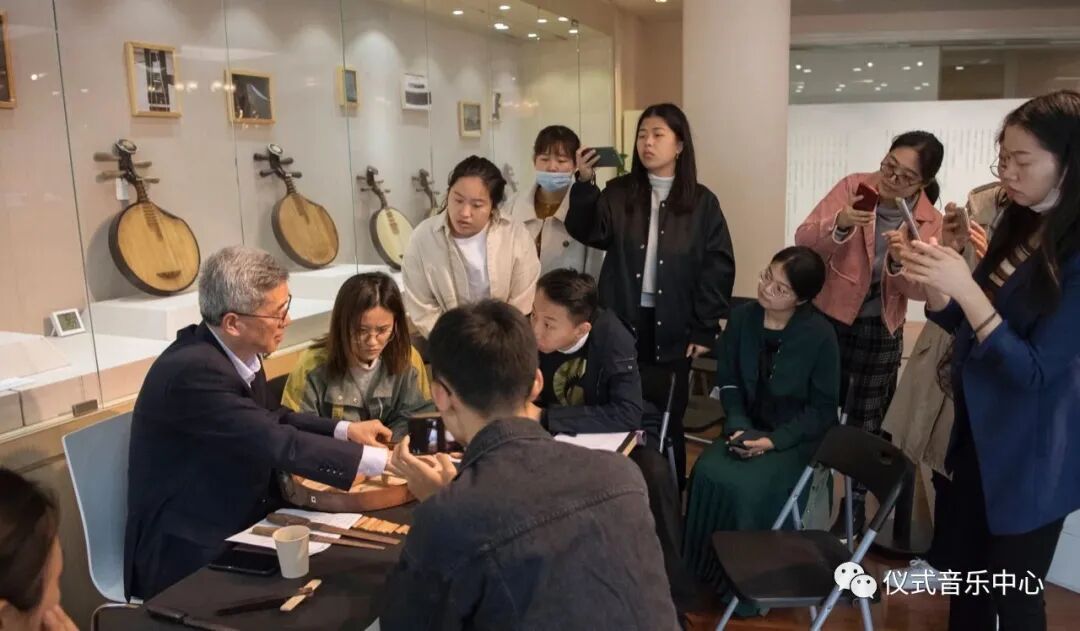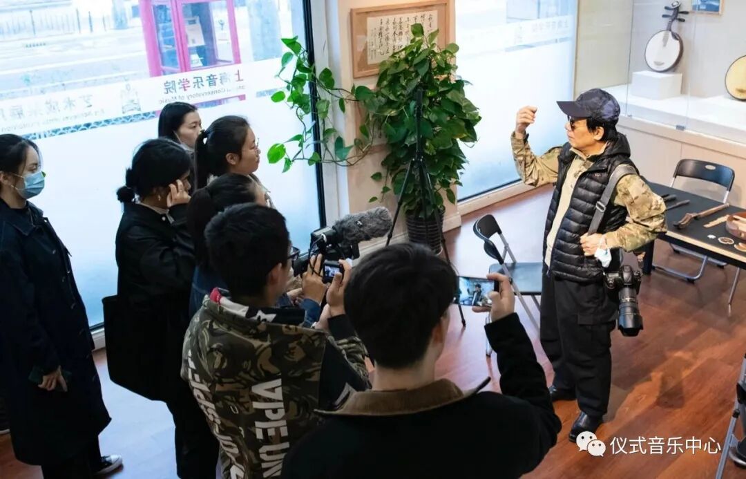 邢媛老师向大家介绍了今天的采录对象——乐器学专家、上海大龢堂乐器文化工作室艺术总监沈正国先生。按照课程要求,我们围绕被调查人的基本信息、师承关系、承担角色、特长、活动区域、家庭迁徙、经济状况等来进行田野元数据采集以及田野影像记录。