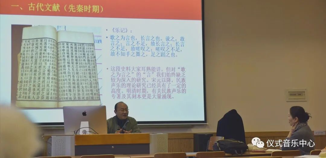 萧梅教授在开场中介绍:“我们今天非常高兴,请到赵仲明博士来讲《中国民族声乐文献导读》。这个学期我们以空间的角度来讲不同地域和民族的歌唱,也非常需要以时间的维度来触及歌唱问题。尤其是作为中国声乐研究。声乐文献对我们来说非常重要。目前,这门课恐怕在各高校都是比较欠缺的。”