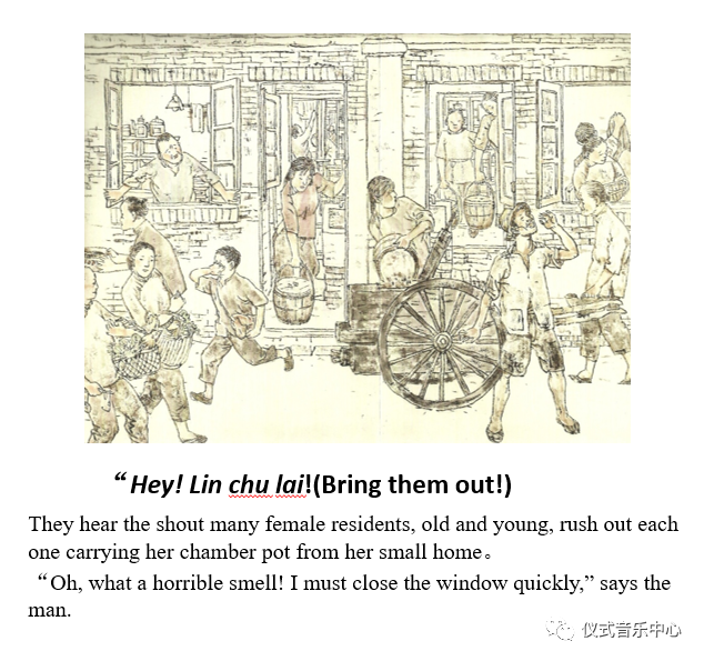 2.Hey! Lin chu lai! His loud voice plus the sound of the cleaning of the Night stools