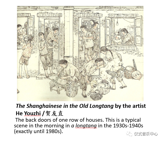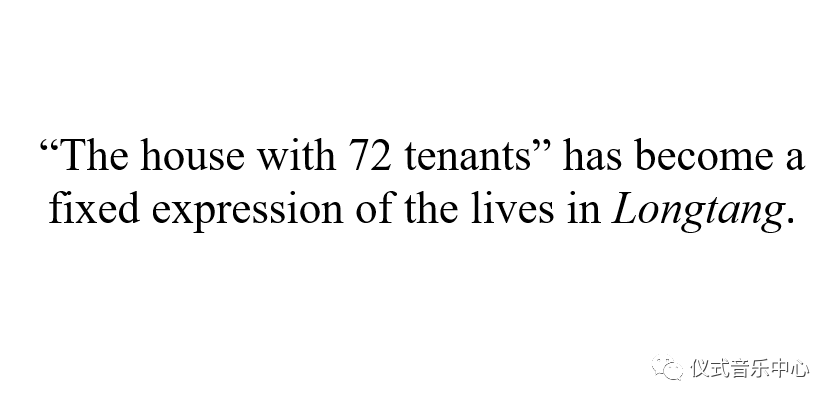 “The house with 72 tenants” has become a fixed expression of the lives inlongtang. Among paintings and pictures that depictlongtang,TheShanghainese in the Old Longtang by the artist He Youzhi can best present the soundscape in this particular environment.