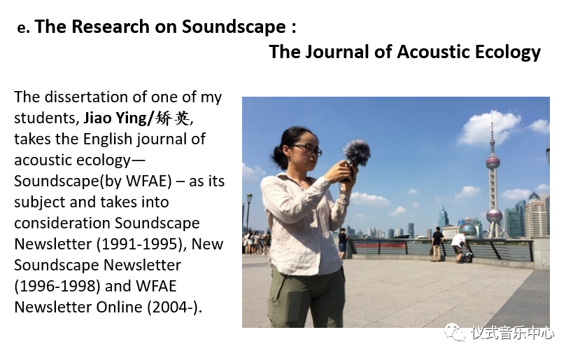Mystudents,Jiao Ying,takesthe English journal of acoustic ecology—Soundscape as a research project for her dissertation. This can be said to be an unprecedented research in the world.