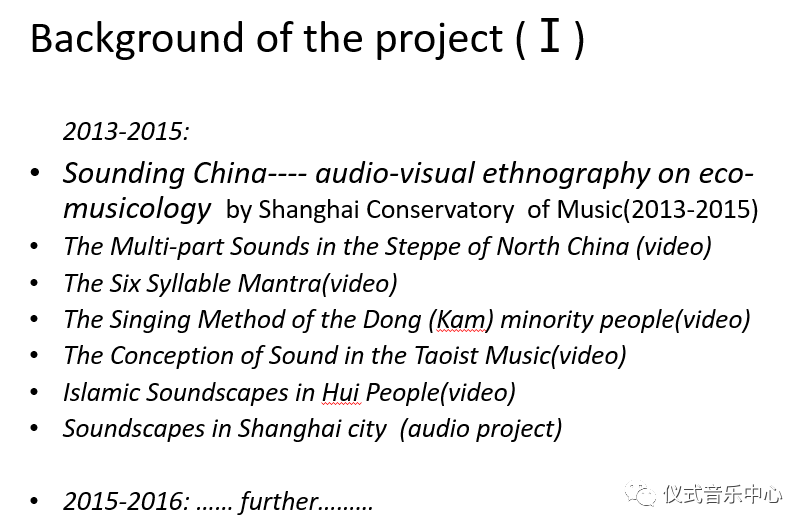 Our project is named ‘Sounding China---- audio-visual ethnography on eco-musicology’. It included 9 sub-groups, such as the Multi-part sounds in the steppe of North China, which also participates in this conference. Among these sub-groups, Shanghai City Soundscapes is the only purely audio project.