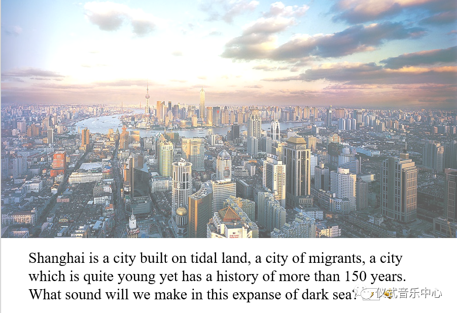 Shanghai is a city built on tidal land, a city of migrants, a city which is quite young yet has a history of more than 150 years. What sound will we make in thisexpanse ofdark sea?