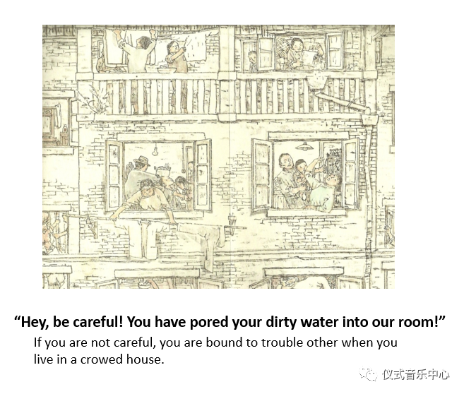 This “symphony” of sounds is an ordeal that each person living inlongtangmust undergo. This may explain the bad temper of many Shanghai women whoiscalled female tiger(母老虎). They always have to fight for the interest of their own families to survive insocrowded places.