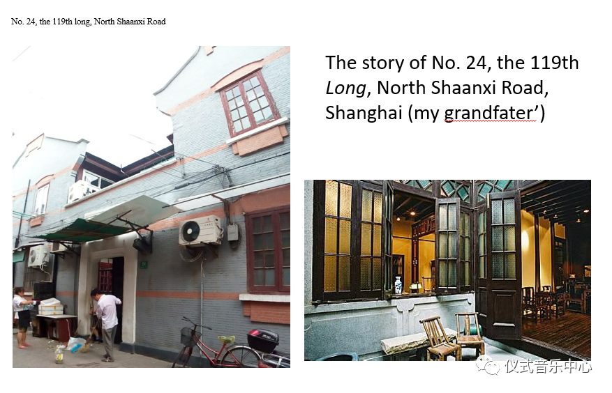 This is the front gate to the house at No. 24, the 119thlong, North Shaanxi Road. And this is the entranceintomy grandfather’s home. I came to this place for the first time at the age of five, when there were much fewer tenants, and the front courtyard and the hallwerepublic sphere. My grandmother told me that in the first half of the 20th century, this hall used to be something like a saloon for playing Guangdong music. Several artists, both professional and amateur, had been regular guests. (Actually, many meeting centers for various kinds of traditional music were set in halls of Shikumen, rather than pavilions on lakes or tea houses.) However, by the early period of the Cultural Revolution, the hall had been taken up as a dwelling. Nowadays, it has been rented to migrants as a little shop(vegetable vendor). The history of this ordinary hall tells us that the soundscape in Shikumen has been altering with the change of the life here.