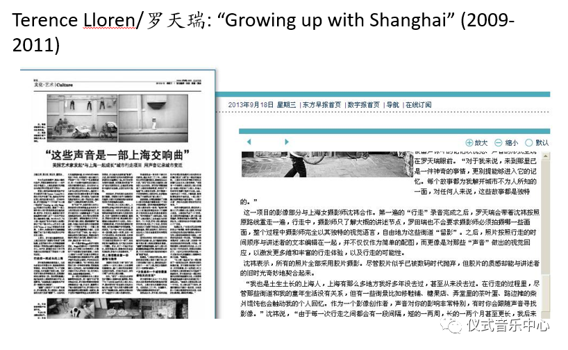 Another person I’ll introduce who isanPhilippinesAmerican, Terence Lloren(罗天瑞)。Hetakedup a project “growing up with shanghai” from 2009, and made a work which was called“Shanghai in the Voice”.
