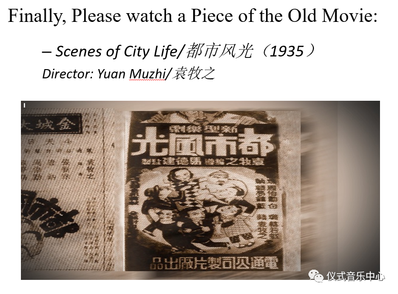 I would like to conclude my presentation with footage of an old famous film about the old Shanghai,Scenes of City Life.
