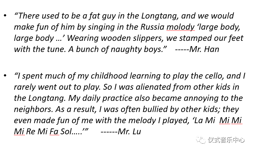 2. “I spent much of my childhood learning to play the cello, and I rarely went out to play. So I was alienated from other kids in thelongtang. My daily practice also became annoying to the neighbors. As a result, I was often bullied by other kids; they even made fun of me with the melody I played,‘LaMiMiMi Mi Re Mi Fa Sol…..’”