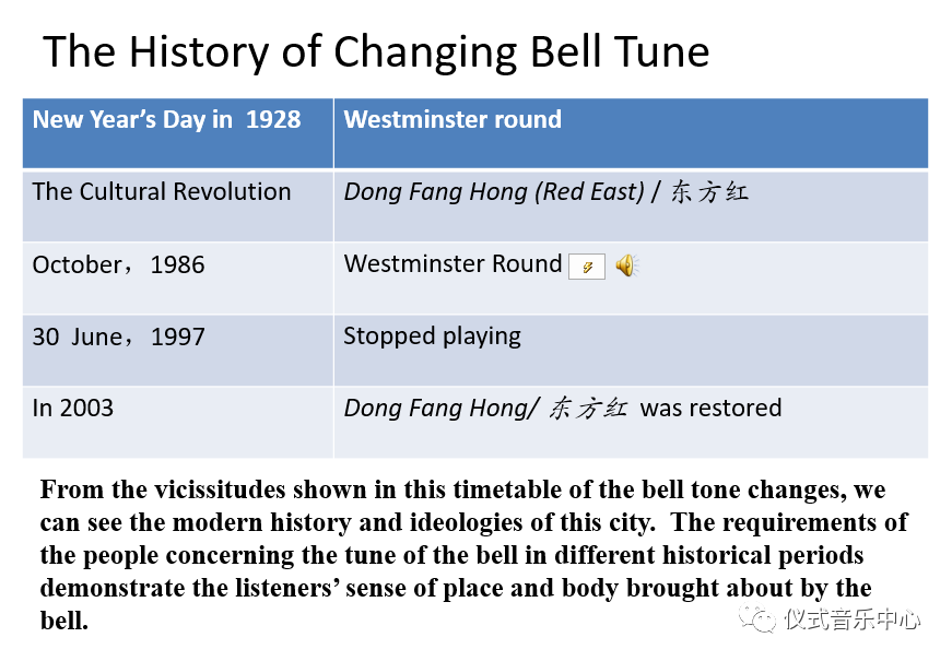 But the question is, nearly 40 years after the end of the Cultural Revolution, why does the bell still play this song? Then we investigated the history of the belltone. On New Year’s Day in 1928, this “biggest bell in Asia”, made its first sound,playing“Westminster round”. When the Cultural Revolution began, the tune was replaced by that of “Dong Fang Hong”.