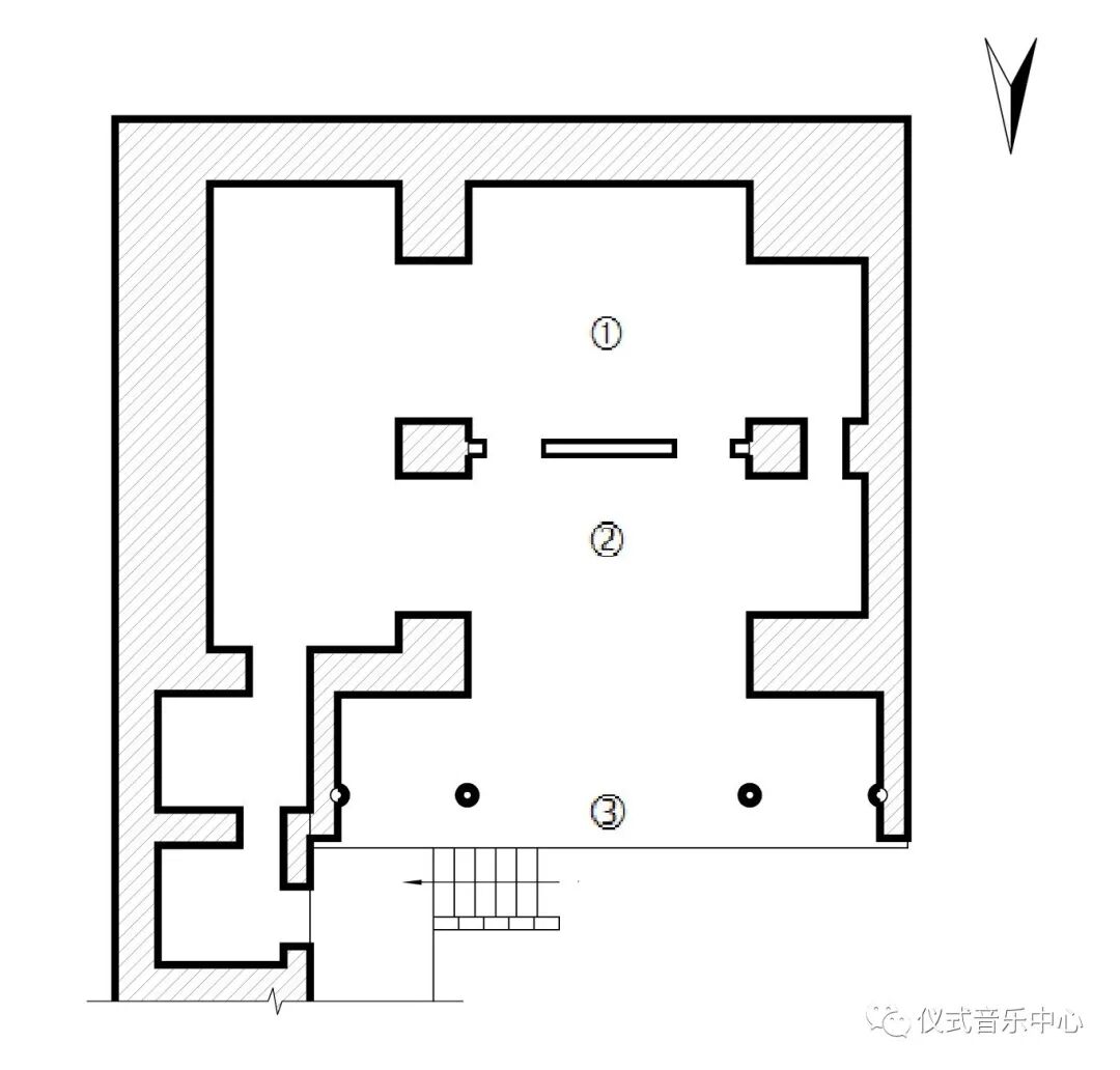 最近我们在田野考察中发现除“卅字”窑洞空腔之外,平遥阮庄村真武庙古戏台后台窑洞空腔④为“开字形”,结构也较为复杂,声学效应明显。故本文通过几何测绘和声学测量,综合分析其材料、形状和结构等因素来探索这种形制的窑洞其声学效应对戏曲音乐的影响,以求贯通戏台建筑史、声学史和戏曲音乐史的研究。不当之处,还祈识者正之。