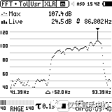 关于测量频段的设定,考虑到山西梆子戏中男角儿最低音不会低于男低音的72Hz,文武场伴奏乐器中的最低音不会低于大提琴的65.4Hz;也考虑到山西中路梆子戏中女角儿最高音的基频虽不会高于花腔女高音的1152Hz,文武场伴奏乐器中最高音的基频虽然不会高于板胡的3537Hz,但考虑到乐音结构中倍频音的频率特征,(引论音感)我们将本次测量的频段设定为50Hz-6500Hz。基于后台窑洞的声学特性,我们先使用白噪声测量,大致确定其峰值频率后再使用扫频信号测量其固有频率。测量时,Minirator MR-PRO信号发生器的输出电平为2dBv,扫频时间为99秒。BK Power Amplifier 2716的输出值恒定不变,XL2音频与声学分析仪的频率宽度调整为最高分辨率。
