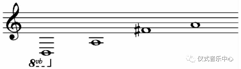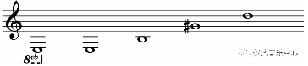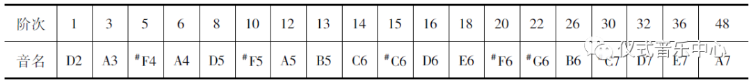 图16 演唱D音时同时激发的泛音的五线谱音高标示