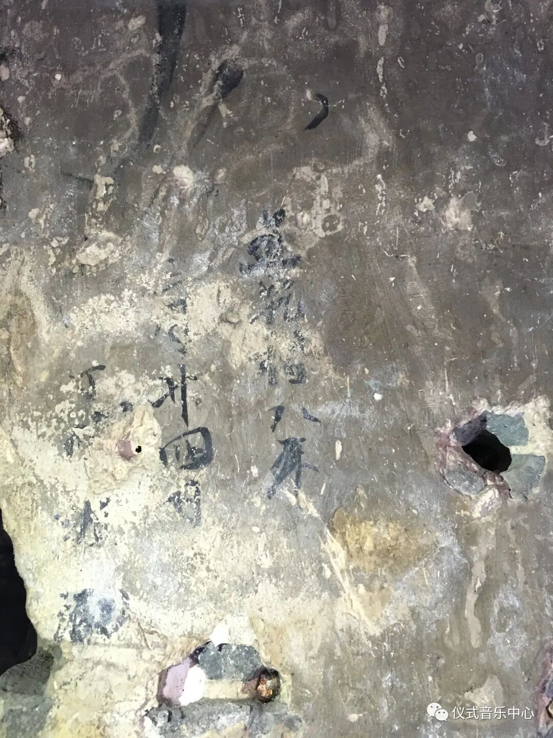 关于古戏台的建造年代不详,在平遥县志中无相关记载,真武庙也无发现任何相关碑刻等。幸运的是,我们在后台的墙壁上发现许多戏班在此演出时留下的题记。题记虽不能明示古戏台建造的具体年代,却能说明该戏台建造时间的下限[8]。
