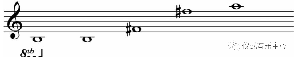 图18 演唱B音时同时激发的泛音的五线谱音高标示
