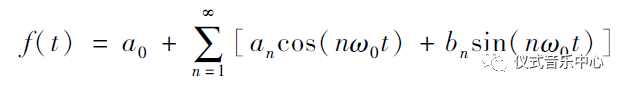 从原理上看,乐音的数学形式是一个周期函数,都可以表示为无数多个不同系数的、呈谐波关系的正弦波之和。用傅里叶定理表示为: