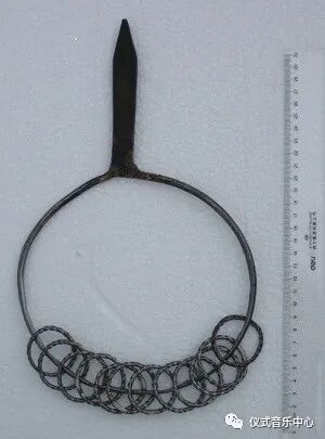 牛文主要依据器物型制的仿佛、器名语源的相关,探求此类乐器跨越中亚佛教文明与伊斯兰文明断层,保持自己特有型制和文明内涵的历史文脉。而在20年后,他进一步将锡杖的源头推向了源自古埃及祭祀音乐的叉铃Sistrum。从图像上看,古埃及的叉铃是一种U形,底部伸出一段直柄把手。U形上横装几根可摇响的金属棒,金属棒上又套小金属环的摇响器。它的主要功能是驱邪,避开晦气。在非洲埃塞俄比亚、几内亚等地区亦使用广泛。牛文从埃及西斯铃的发端,越过基督教之旅(十字权杖),再到佛教十八物之一的锡杖。如我们在地藏王图像中所见,能够“振开地狱之门”的金锡。此锡杖即“十二环锡杖”。牛文继续罗列了长柄锡杖与短柄锡杖,并明确指出短柄锡杖就是萨巴依,并为维吾尔族为人治病驱邪的游吟“托钵僧”巴西克所执。进而,他给出“古代西域,佛教文明昌盛,锡杖是当时时髦法器。十世纪伊斯兰化之后,锡杖不得不隐姓埋名,于此情势之中,短柄手锡杖则以“萨巴依”的名目继续风行民间。其称名与西斯铃以及锡杖的称名首音相仿佛,绝非偶然”的结论。进而,他将中国各地流布的西沙(萨满腰铃)、洒尺(霸王鞭)、师刀、串钱拍,以及太平鼓(鼓把缀有环)等等,都纳入了西斯铃东传的影响范围中。笔者佩服牛龙菲粗线条勾画历史的本事,其中有关锡杖与萨巴依的关系所透视的西域文化和宗教历史,确实值得文化史的再度思考。但以各类乐器称谓所发出的第一个音“Si”为考,带出的问题太多。因为,拉丁语的Sistrum,源自希腊文seistron,意为“摇动之物”。根据古人命名的一般法则,往往既包括了行为(如摇动),又包括了结果(摇动之声)。而后者往往是“拟声”的结果。有如中国之“樂”,形训应在声训之后。又如之前提到的西文percussion,既有敲打,又含震动。而上述丽江纳西族“桑扒”使用的sala铁片圈,就是发出萨拉萨拉之声的象声词。而花腰彝的环刀“洗瑟儿”,其“洗”之音,为彝语的“铁”义。