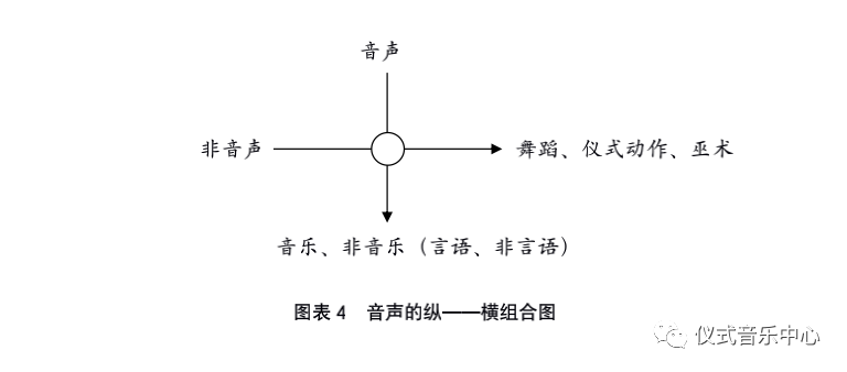 非音乐的音声成分包括用吟诵、韵白、呼喊等形式表达的祭祷词、祝赞词等言语形式,以及非言语形式的声响等两种。