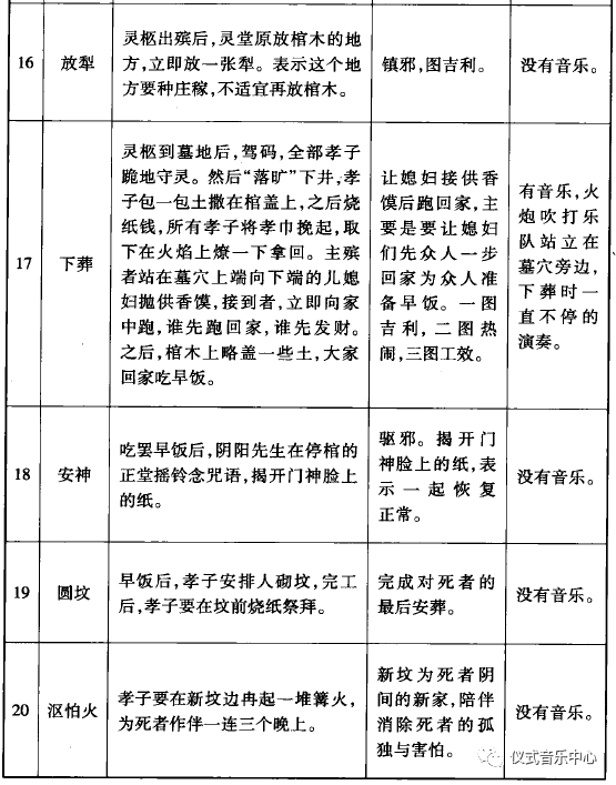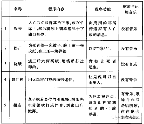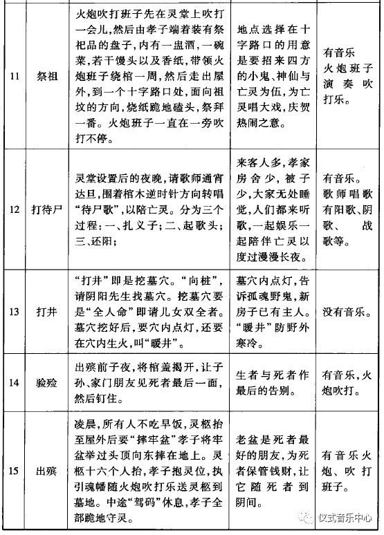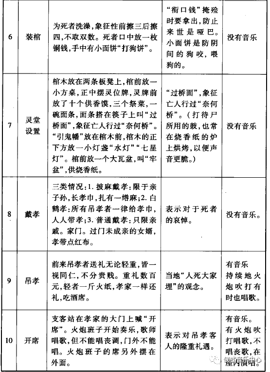 表1:吕家河地区葬礼程序与音乐状况一览表