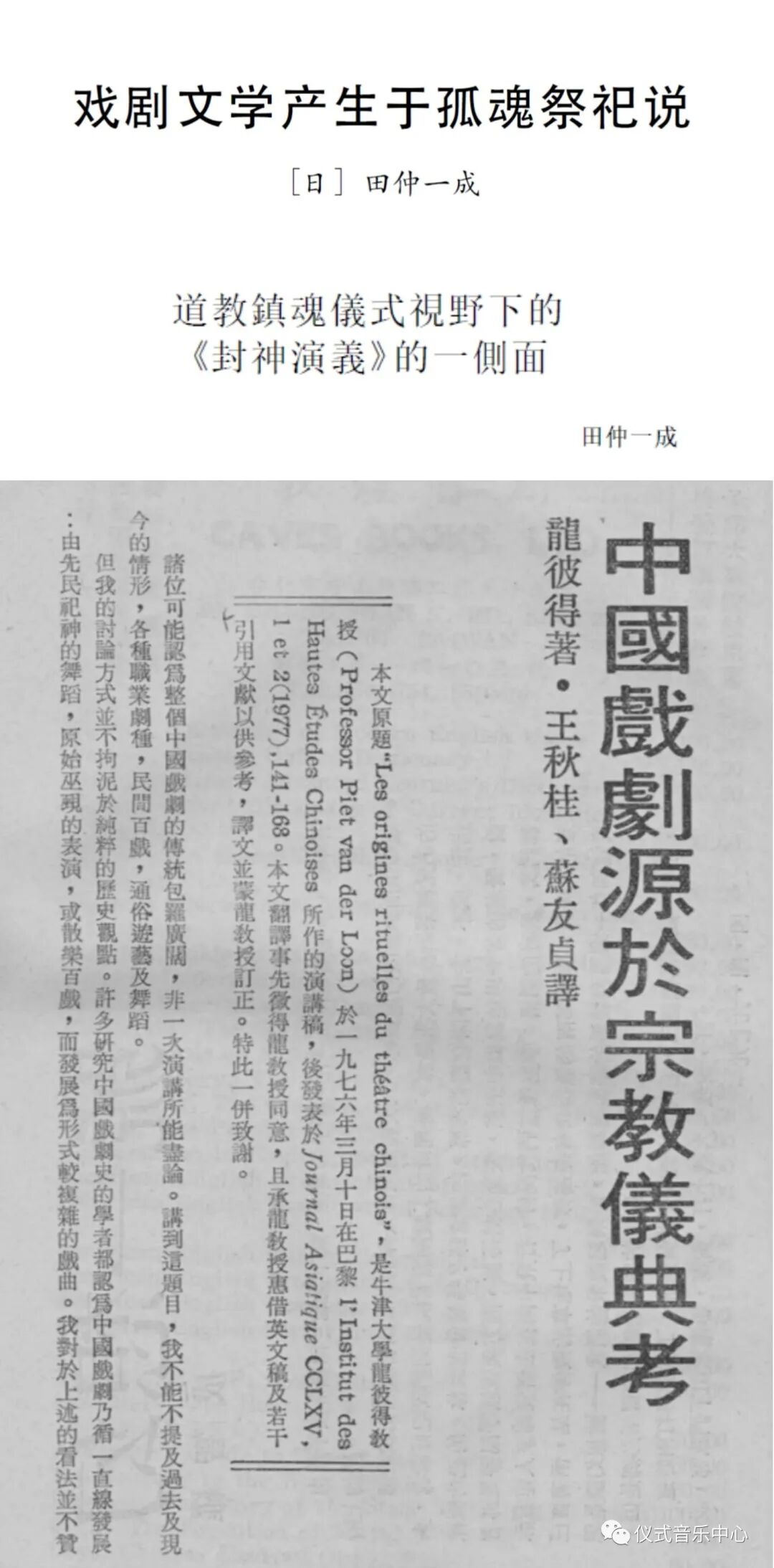 龙彼得、田仲一成的三篇文论
