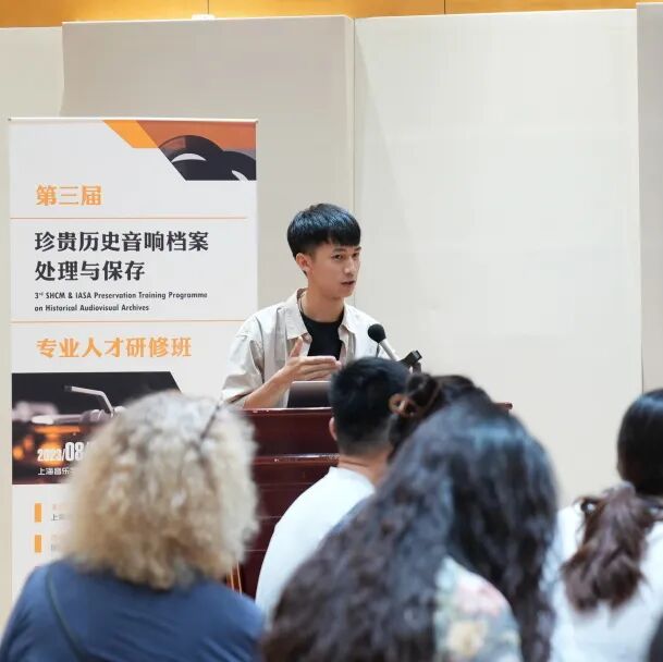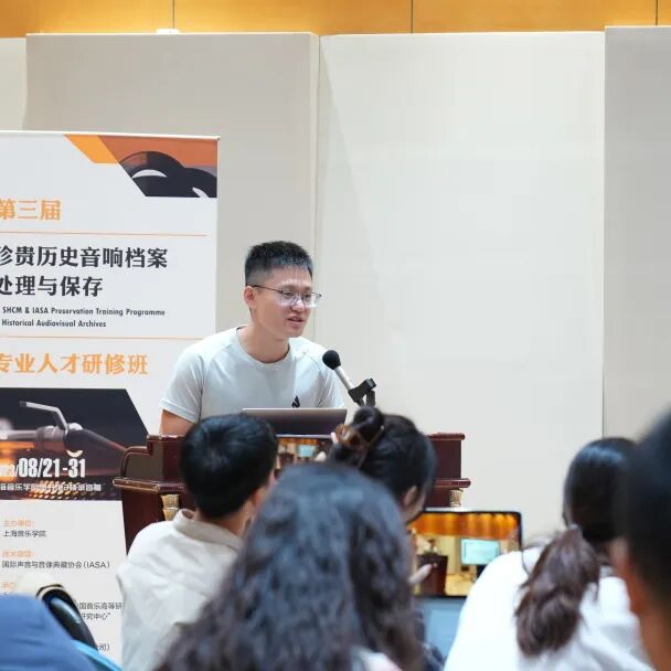 北京红帽软件公司林文炜以《磁性录音档案的抢救性保护》为题对他所收藏的不同类型、来源与内容的开盘录音带进行了介绍,并谈了参与此次研修的感受。中国台湾师范大学的刘育廷与陈福笙以《虫胶唱片数字化工作》和《日治时期虫胶唱片数位典藏计画》就中国台湾师范大学音乐典藏中心所主持的虫胶唱片数字化项目与面临的问题和以此次学习的方式反思过往操作中的做法等做了交流。上海电影技术厂有限公司录音师黄飞龙则以他参与老电影数字化修复工作的经验,谈如何让数字修复为老电影注入新的活力,为当代观众更好的理解与欣赏。