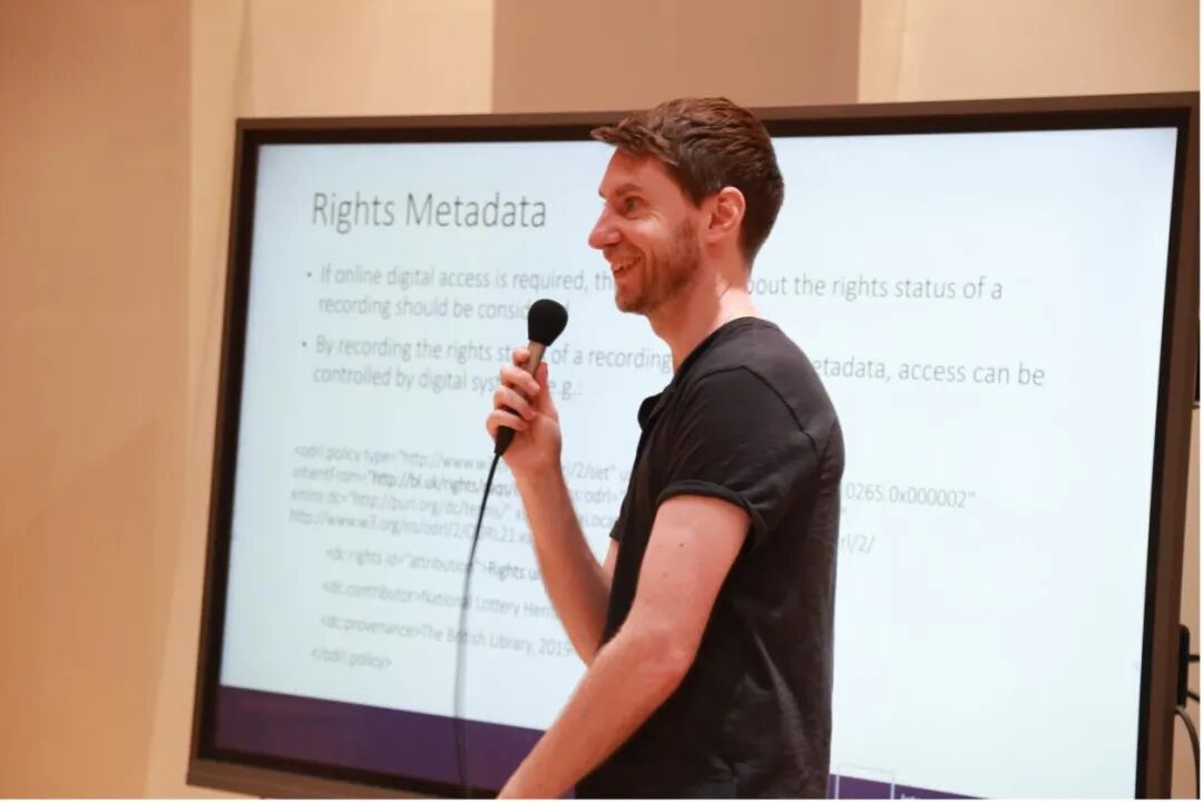 下午下半场是由亚当·托维尔主讲的“元数据音频保存”。他首先对元数据定义、为什么要创建元数据、如何创建元数据及元数据的类型等基本理论进行界定和总结。他认为没有元数据,声音档案就无法使用,也无法维护。创建、保存和更新详细的元数据对于数字声音收藏的维护至关重要。