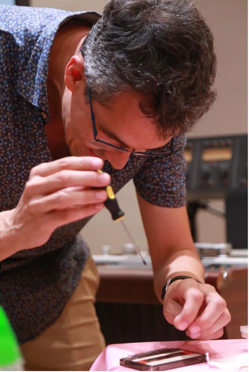下午上半场由亚当·托维主讲“磁带内容传输”。他简要介绍了磁带的历史、相关的基本理论和磁带的类型。随后学员分为两组,分别由亚当·托维和恩里克·吉内·吉克斯分别讲解示范对磁带内容传输工作流程,包括准备、清洁和参数优化等方面进行实操练习。