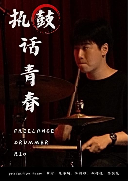 《执鼓话青春——Freelance Drummer Rio》是一部讲述上海音乐学院流行打击乐器专业的本科生刘天睿(Rio)毕业之后人生经历的音乐影像志。刘天睿的青春与音乐相伴,他手持鼓棒,敲响音乐生对未来的憧憬和炽热的理想。选择留在上海,势必面临许多困难,租房、工作、爱情、友谊、未来规划,这些选择碎片与刘天睿的未来之路交织碰撞,奏响了他的青春之歌。让我们循着鼓手刘天睿的鼓点,聆听他的故事。