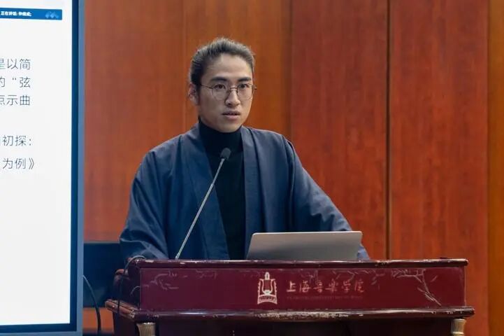 3月19日下午第四场专题发言由天津音乐学院李凤云教授主持,国家级非物质文化遗产项目古琴艺术代表性传承人吴钊先生担任评议。本组主题为“蕤宾调”和《神品蕤宾意》。《神品蕤宾意》则是专为外调定弦“神品蕤宾调”而作的琴曲小品。桑坤主要通过文献梳理与实证分析,探索了“蕤宾调”的名实渊源与历史发展的若干问题。杨楚婷和艾鹏飞分享了各自对《神品蕤宾意》的打谱经验与心得体会。姬凌宇、朱诗旖和王烈分析了“凄凉调”“楚商调”以及《商角意》中的调意和调式系统。