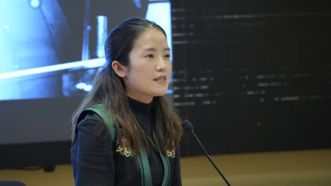 第二位发言人是四川音乐学院音乐学系教授刘雯,发言题目是《羌族多声部民歌的演唱与训练法探析》。介绍了研究的基本情况后,刘雯从羌族多声部民歌的演唱形式、训练方式、演唱姿势等方面展开。结合自身调研、记谱的实践经历,她还在现场展示了羌族歌曲与相关动作,具体分析羌族多声部民歌波浪交替式的声部安排、歌唱神圣性等特点,体现了羌族人合唱观念、传承等方面的特征。