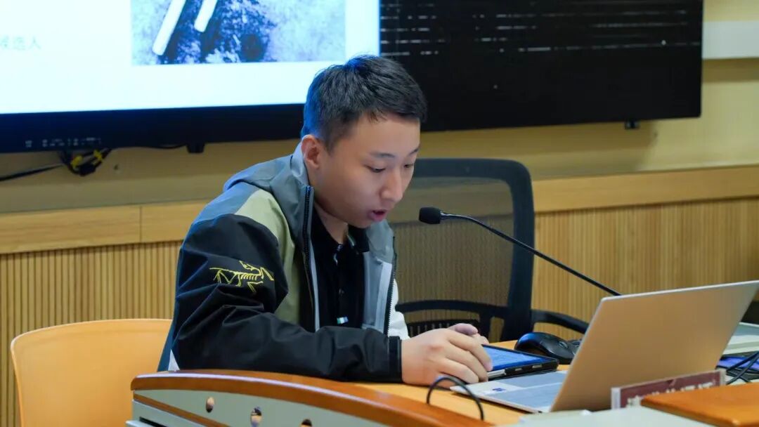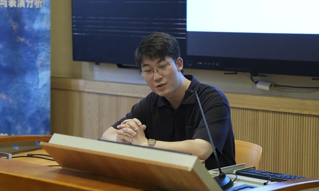 第一个主题是图瓦楚吾尔《阿勒泰山的轮廓》的描写与分析,由2021级音乐人类学方向博士候选人张珊主讲。播放音频材料后,他从自身的分析思路出发,由描绘聆听感受的旋律线条到借助技术手段的客观分析,对这段音乐的声音形态展开描述。接着又从音响信息转向乐器学分析,推测出乐器形制、演奏法等内容。