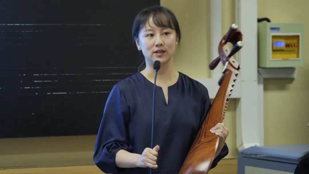 第三位发言人是四川音乐学院民乐系琵琶教师何湾湾,发言题目是《南琶与北琶传承比较研究——以指法为研究对象》。她的发言聚焦于琵琶演奏的指法问题,以流行于闽南语系方言区的南音琵琶和明清以来在我国教育体制传承中形成的琵琶为研究对象。何湾湾结合了自身学习和演奏的经历,通过在现场轮流演奏两把琵琶,对比讲解了两种指法思维体现出的不同审美观念,进而拓展至使用、传承等方面的讨论。