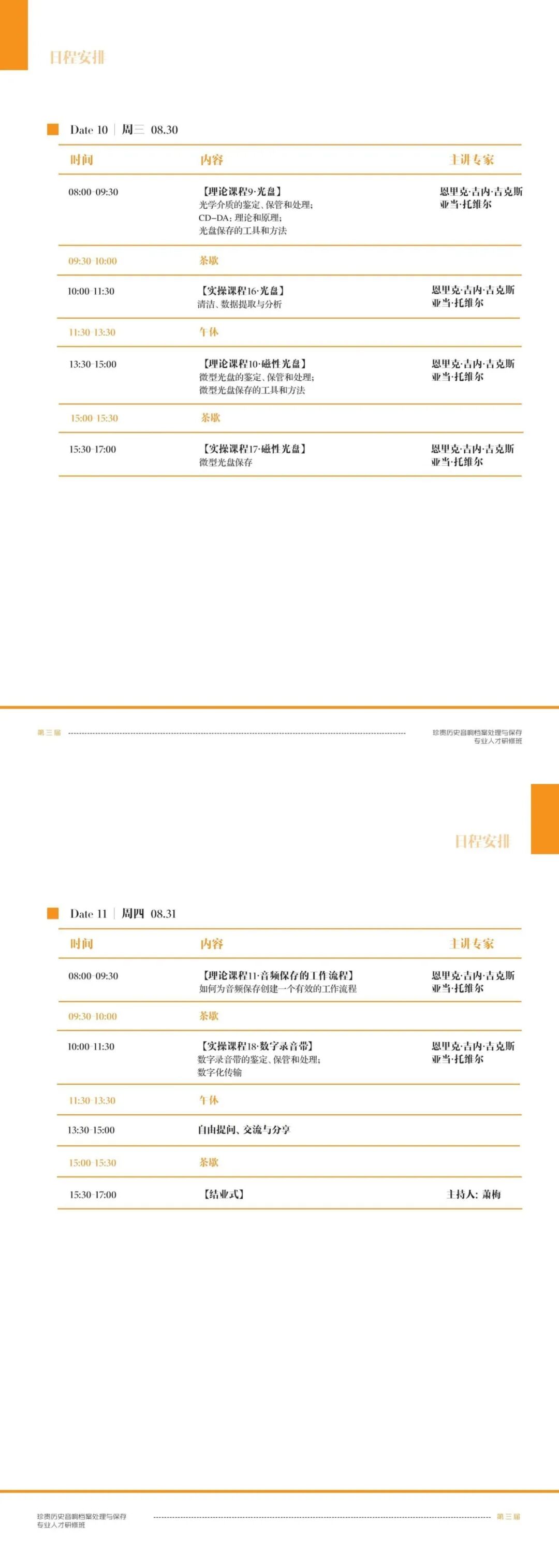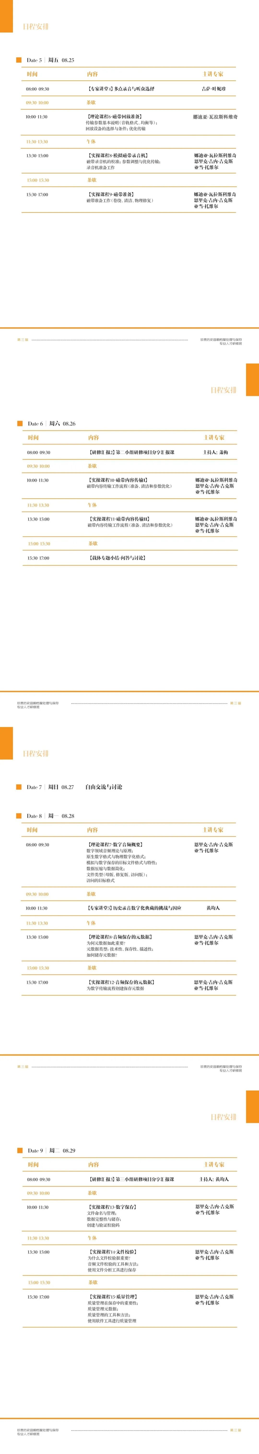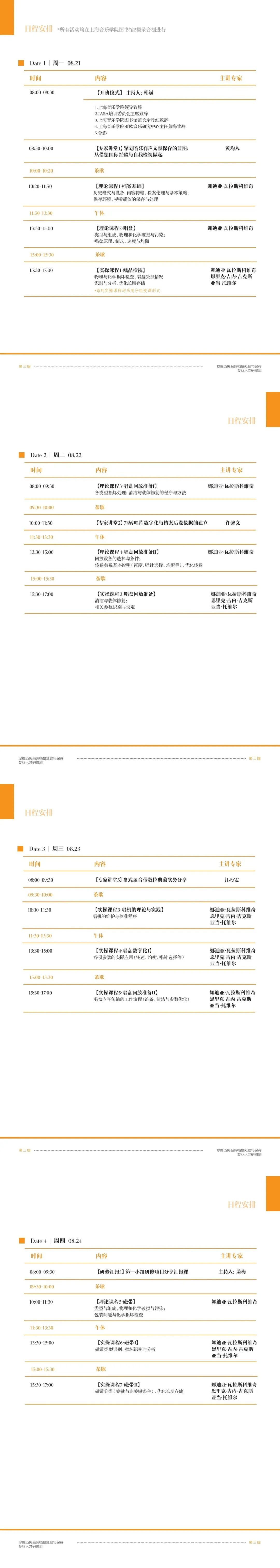 (2023年8月)研修日程|第三届珍贵历史音响档案处理与保存专业人才研修班日程安排