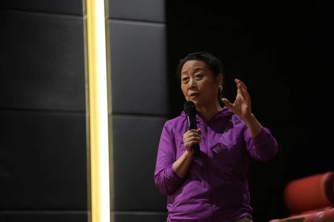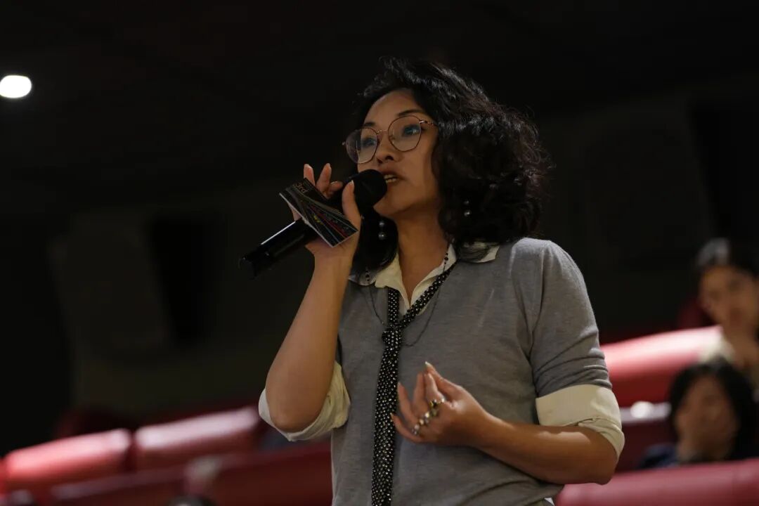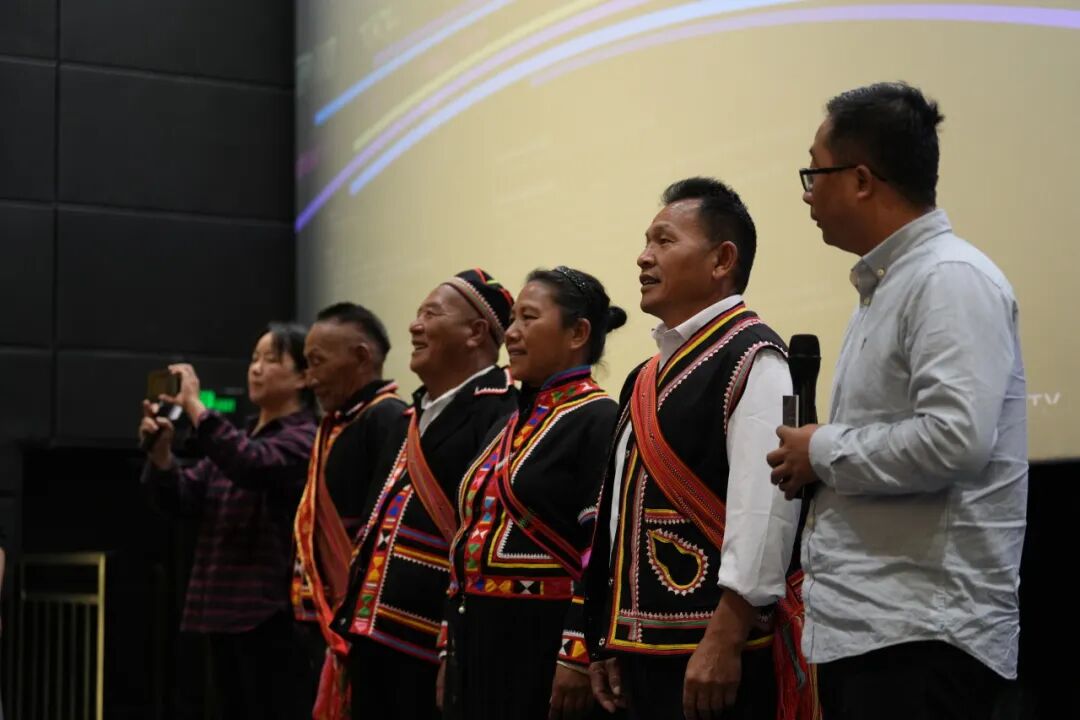 四位传承人朴实真诚的发言,令现场所有观众动容。程俏俏强调,在影片中,跟随非遗的挖掘过程,我们看到了学术的力量,看到了背后音乐的张力和可延续的过程。紧接着,程俏俏邀请传承人教现场观众学唱牡帕密帕,现场气氛活跃、热烈。