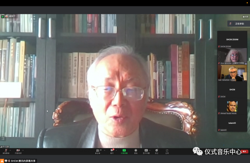开幕式由此次会议的发起人——上海音乐学院萧梅教授主持。她首先指出能够连续四次举办“丝绸之路上的乐器”专题研讨会的意义,并向出席开幕式的国际传统音乐学会(ICTM)主席斯文尼伯·帕顿(Svanibor Pettan)、上海音乐学院副院长刘英教授、上海音乐学院科研处处长伍维曦教授以及来自世界各地的近200位线上与线下的与会者们介绍前三次会议的出版成果:会议论文集《丝绸之路上的抱弹类鲁特》《丝绸之路上的复合簧管乐器》《丝绸之路上的鼓与鼓乐》。其后,她简要介绍了会议举办时间安排以及参会者情况。