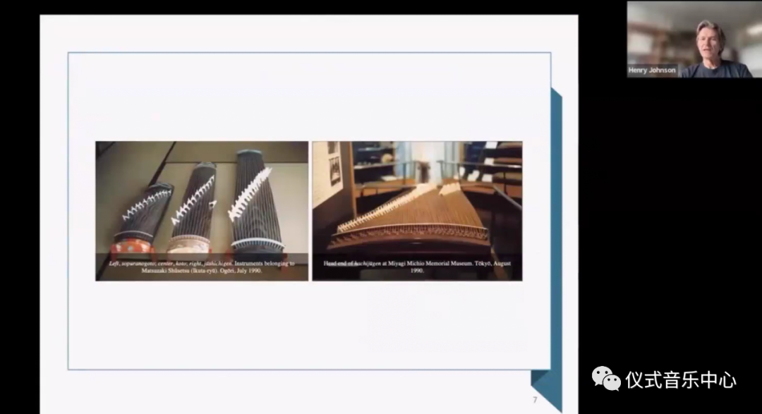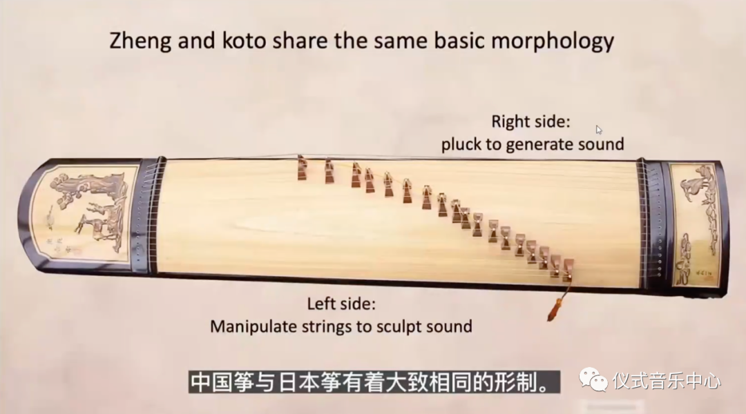 亨利·强生教授的发言主要聚焦于日本筝的形式和视觉文化,探索乐器的文化关联,即作为有助于巩固其声音遗产的标志。强生教授对比日本筝与中国传统乐器古筝,阐述日本筝是如何在保持一种统一的、公认的物理形态,同时又以许多复杂的方式进行改造。其次,在丝绸之路的论题中,日本筝加强了乐器的传承性。这项研究有助于解释音乐与物质文化如何发挥文化因素与实践作用,将声音与场所联系起来。