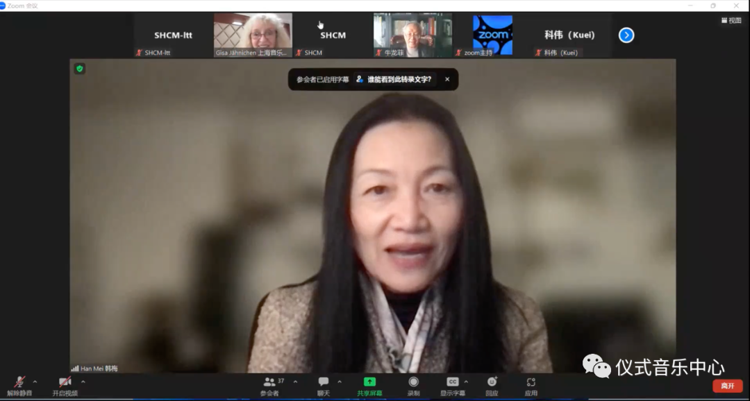 随后,韩梅结合她向日本筝大师沢井一惠学习的经历,指出在寻求筝的具有时代感的声音的同时,应该保留并充分利用这种乐器本身所拥有的潜力的答案在于“韵”。她主张筝演奏者继承并发展左手的按弦技巧,充分发掘传统的“韵”,通过“韵”,可以保留中国传统音乐的精髓,延续中国美学和文化身份,走向中国筝乐的未来。
