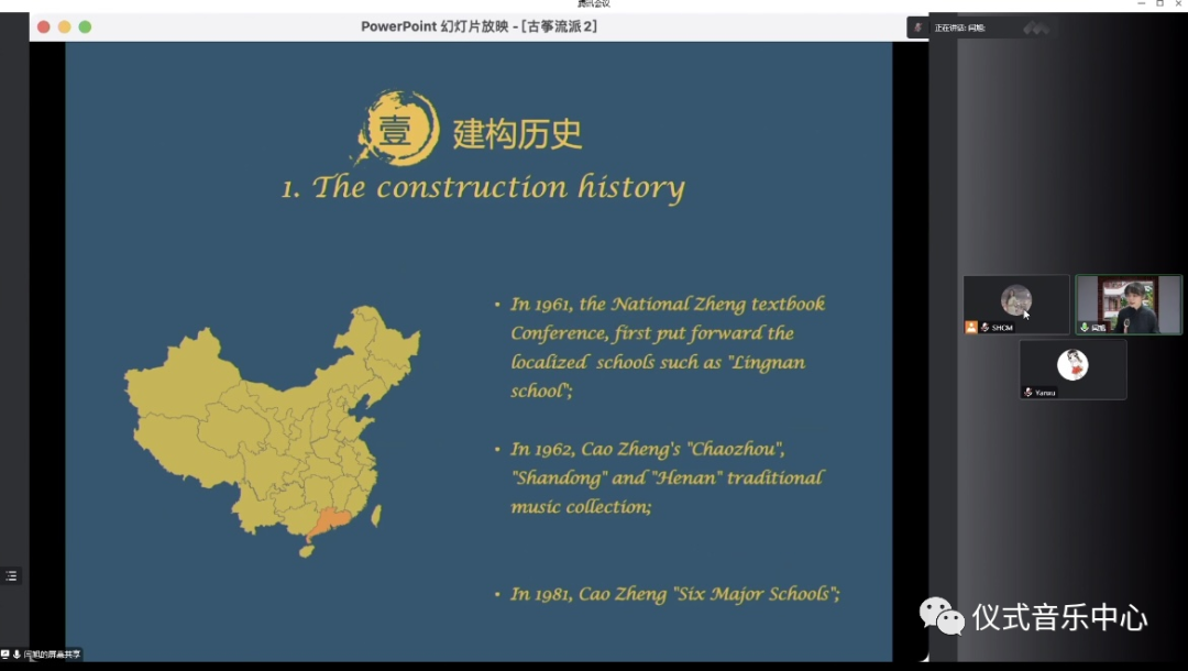下午15点30分,专题工作坊“从合乐乐种到独奏流派:中国古筝流派的建构历史与演释”如期举行。本次工作坊由上海交通大学教师闫旭、青年古筝演奏家王伊共同表演和讲解,通过线上直播为数百位听众呈现了丰富的讲解及精彩的演奏。